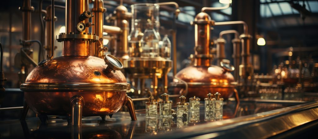 Na fermentatie heeft de vloeistof een alcoholpercentage van ongeveer 6 tot 10%. Om een hogere concentratie alcohol te verkrijgen en de vloeistof te zuiveren, volgt de stap van destilleren.